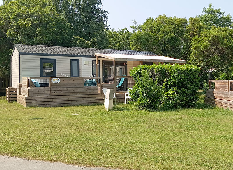 Mobil-home 6 Places Grand Confort climatisé 2 chambres + alcôve avec terrasse bois semi-couverte et TV