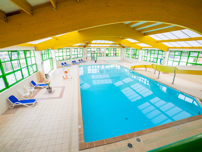 L’espace aquatique est composé d’une piscine couverte et chauffée avec une pataugeoire et un toboggan aquatique intérieur, un sauna, un spa.